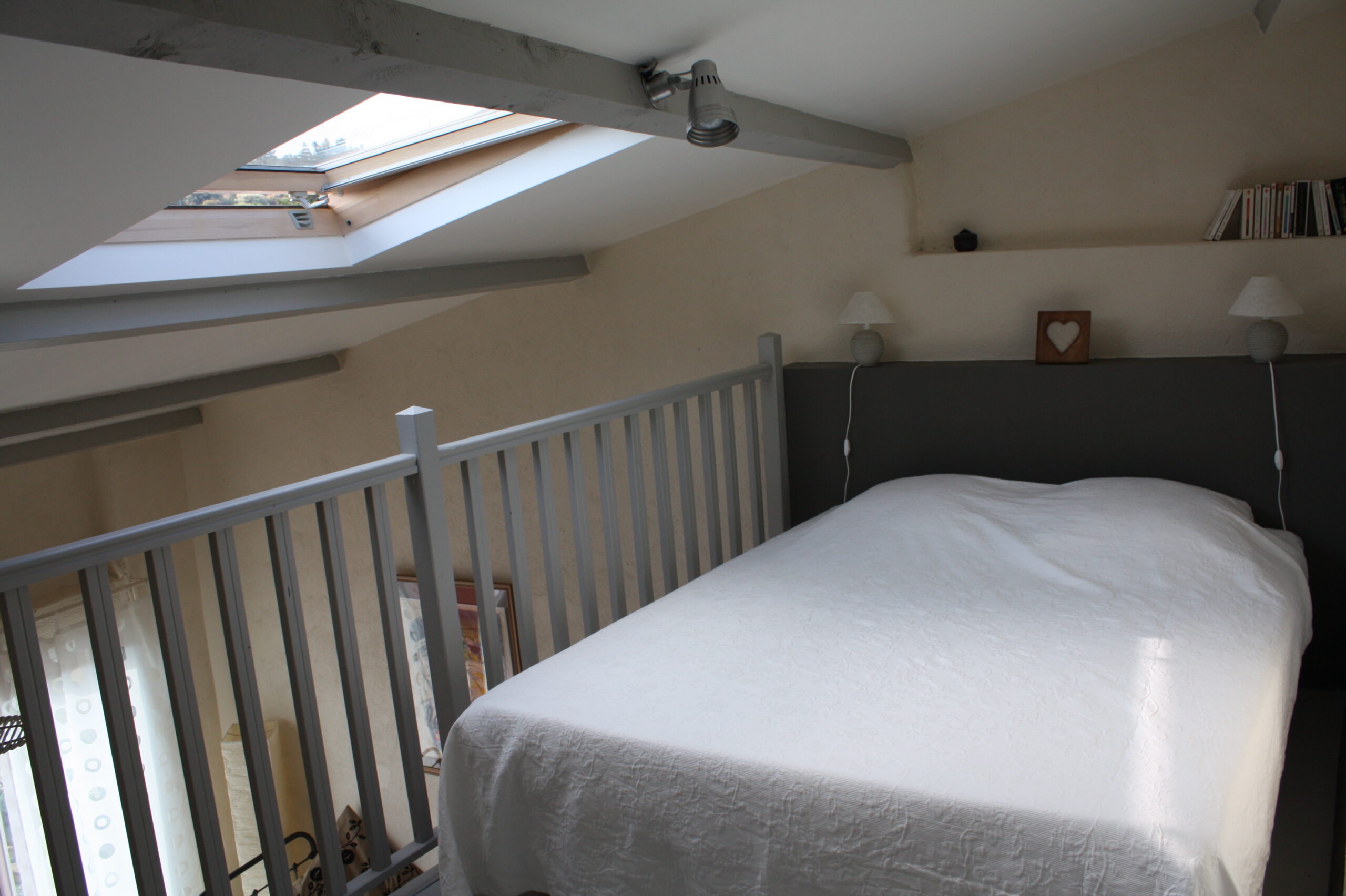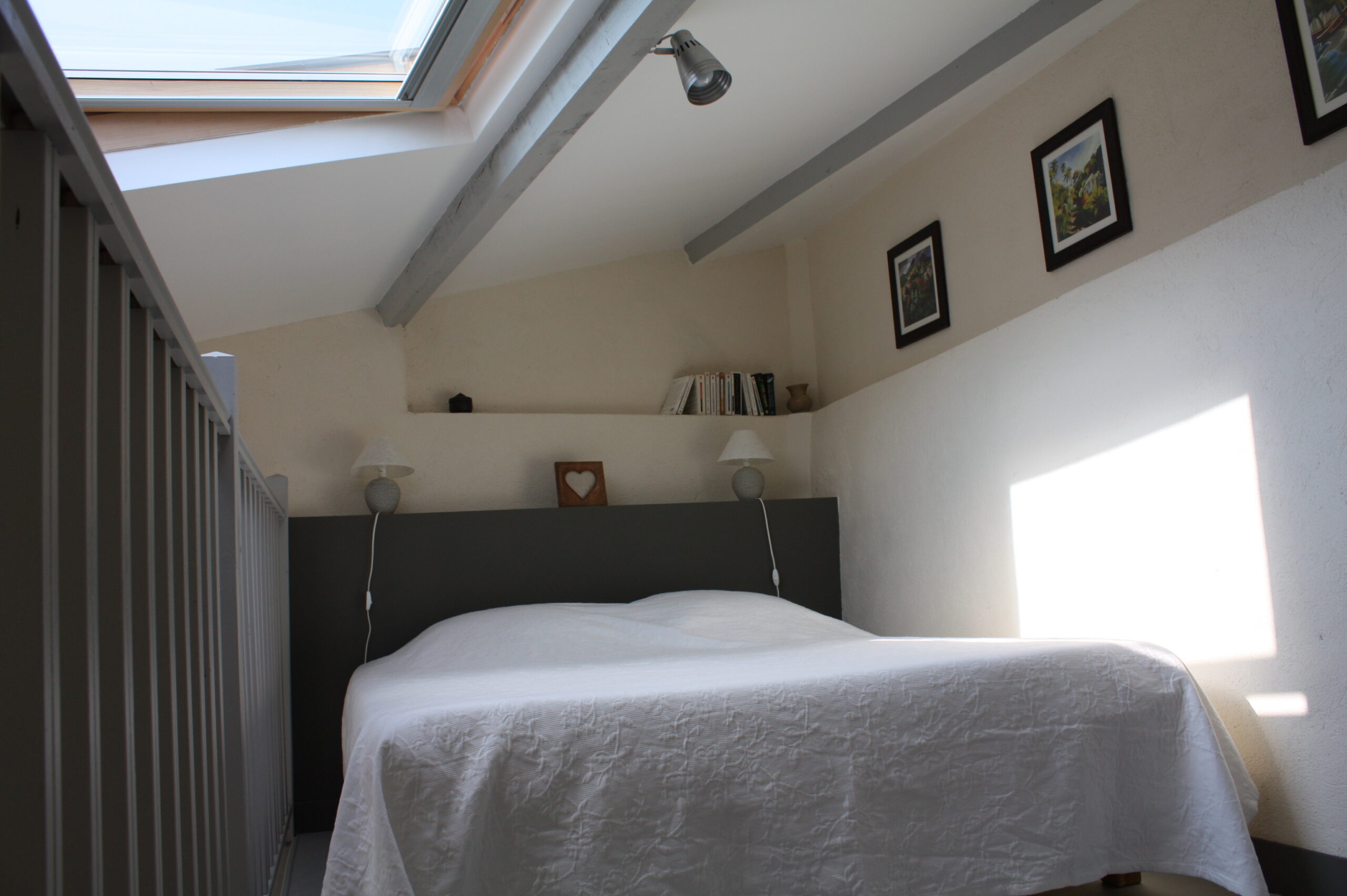 L’espace nuit à l’étage accueille un lit double en 160, un téléviseur….